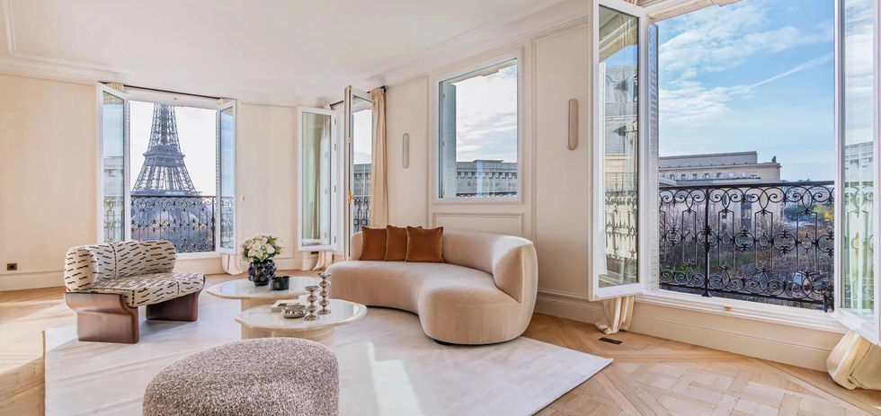 从卧室到浴室,都拥有难得的无遮挡景观:埃菲尔铁塔、荣军院金色穹顶以及巴黎屋顶全景一览无余